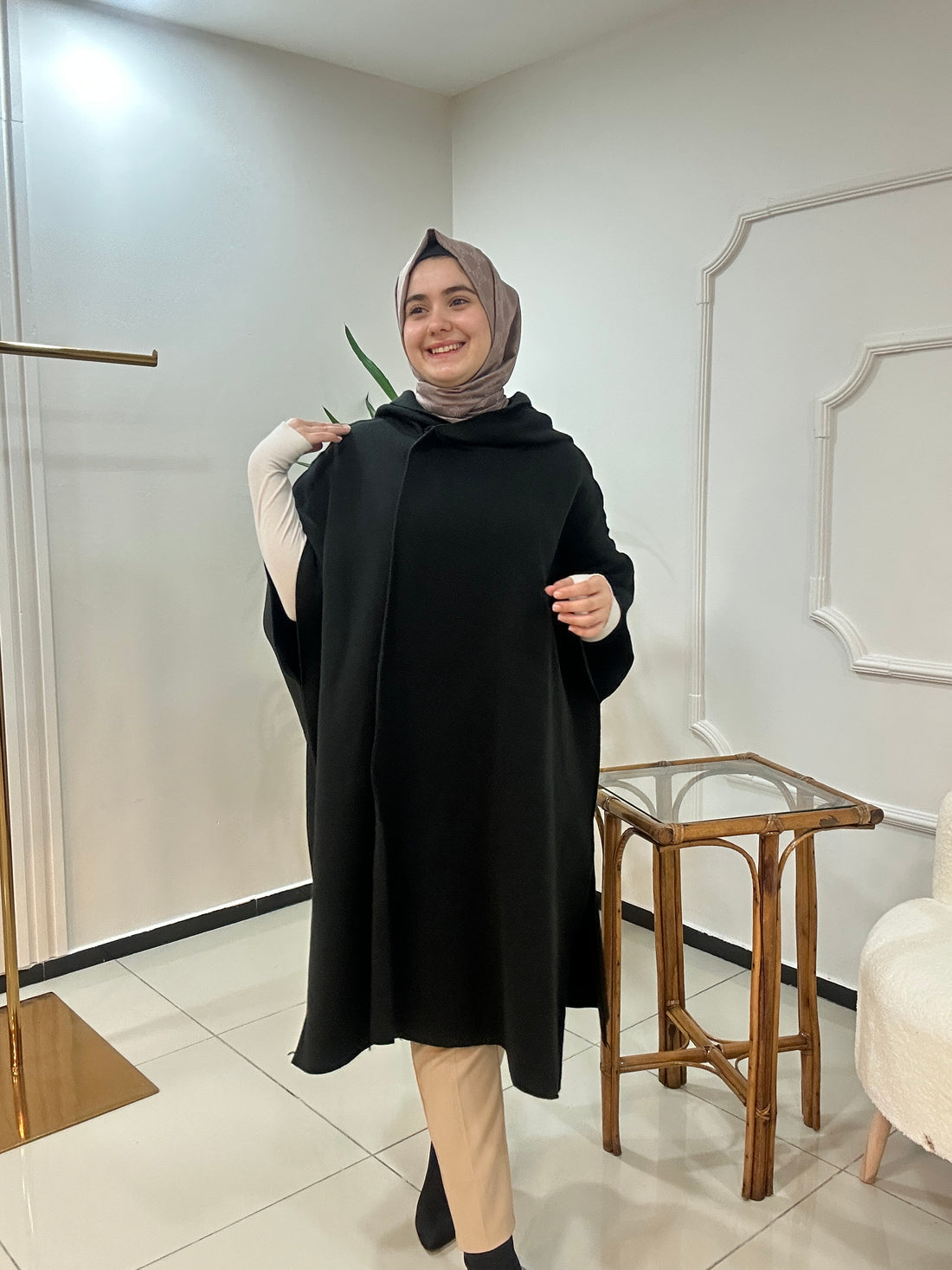 Kapşonlu Çelik Örgü Panço