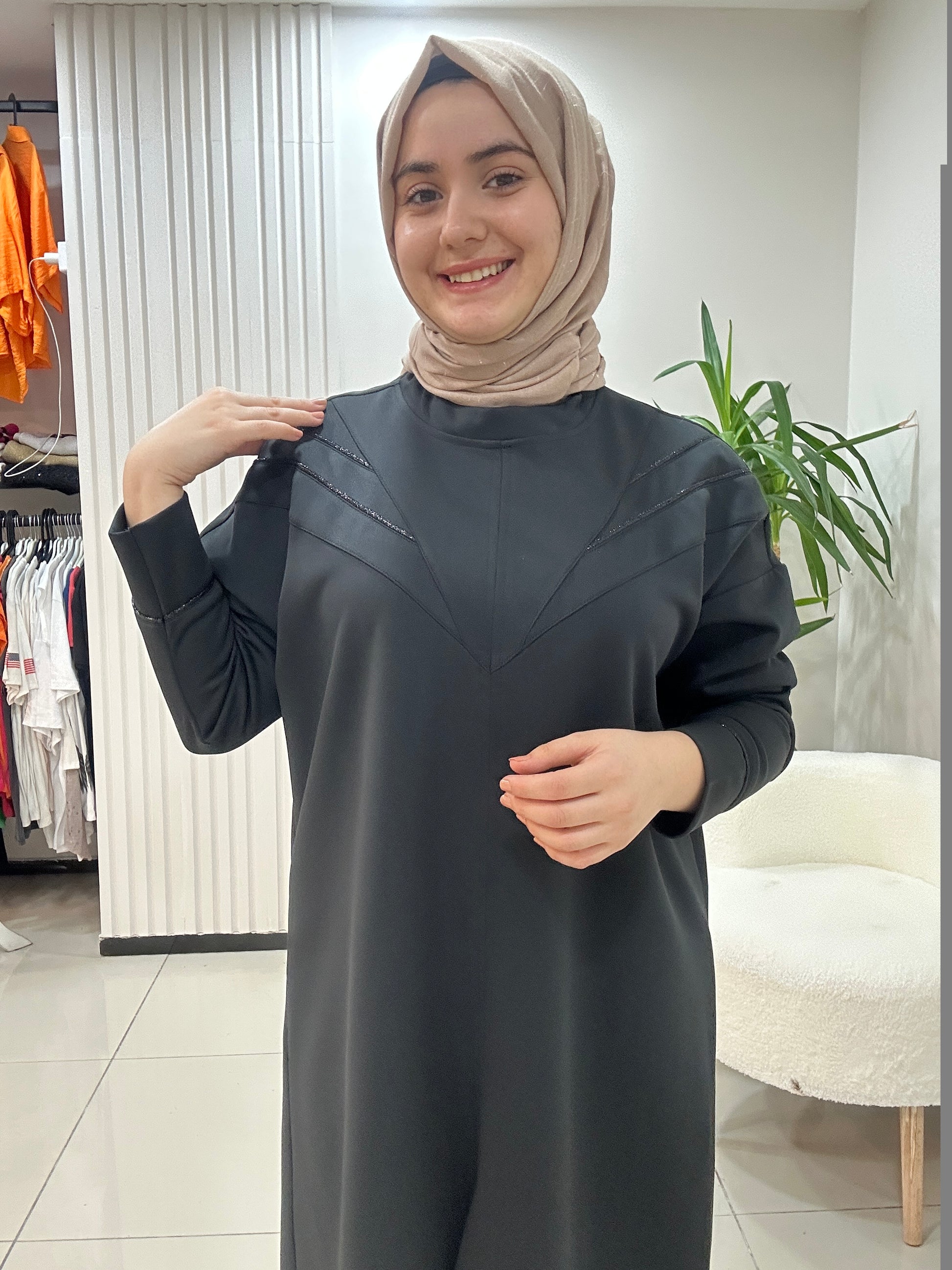 Kaliteli duruşa sahip yırtmaçlı tunik.