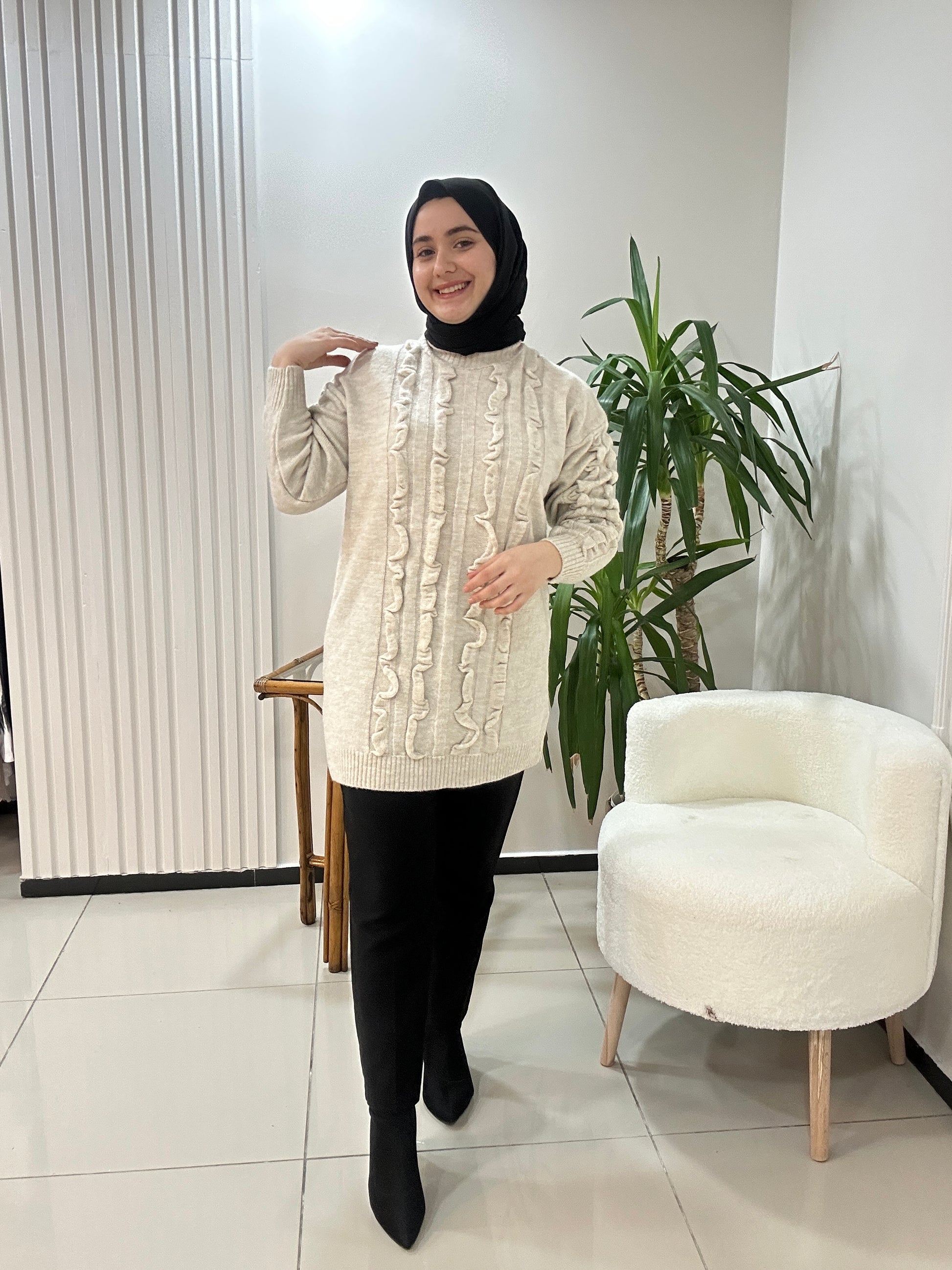 Dalgalı Kabartma Desen Triko