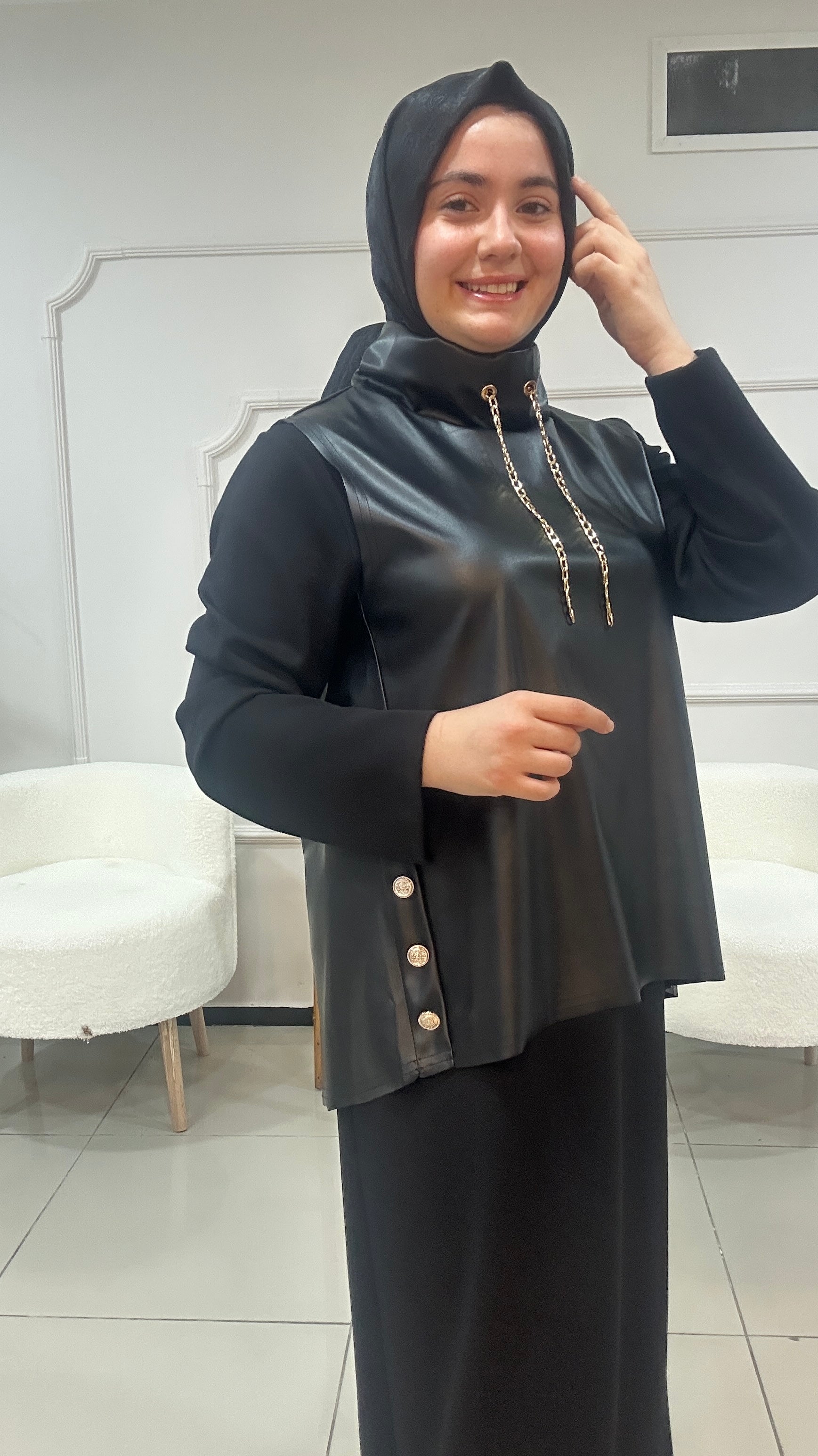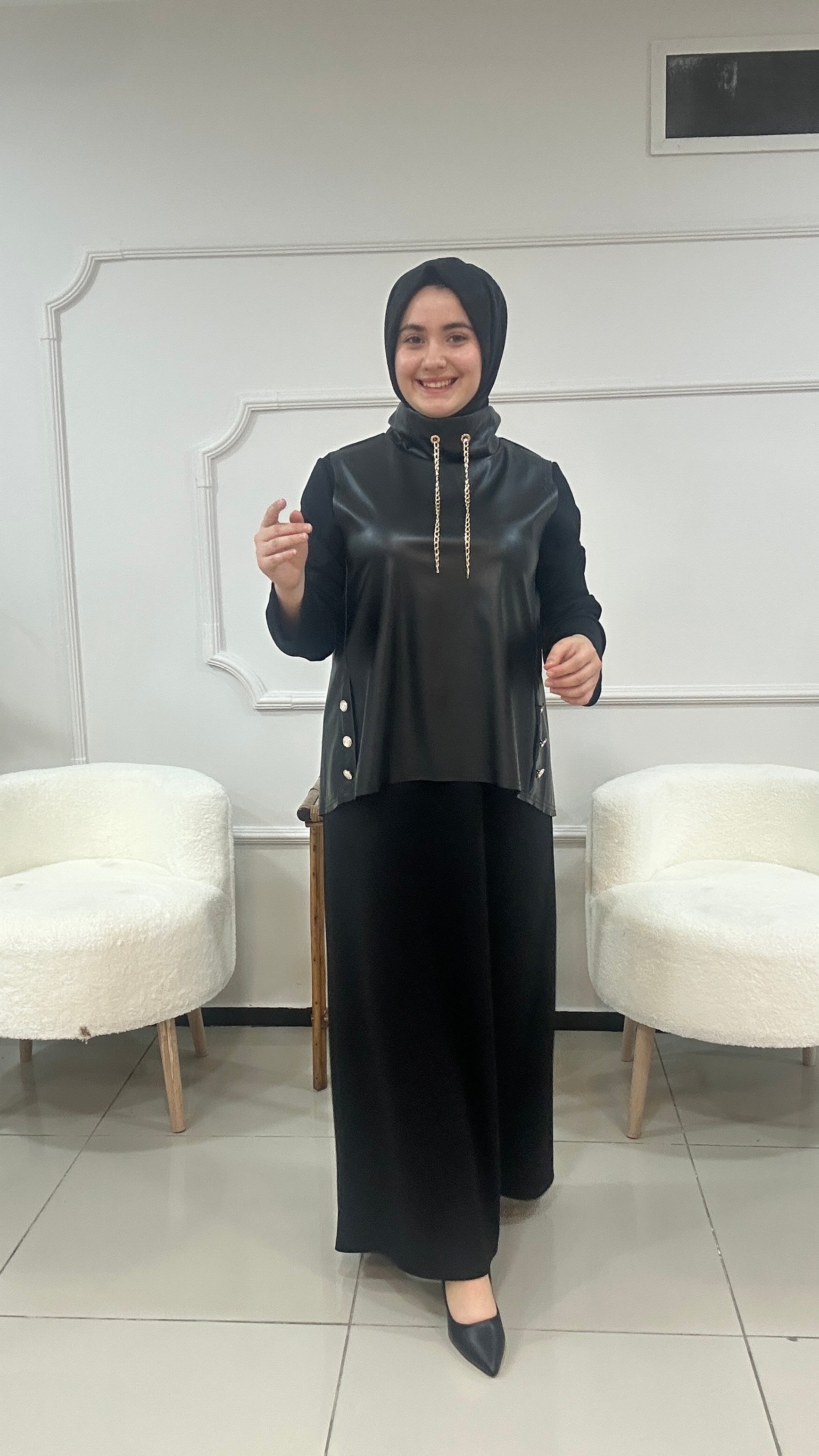 Suni deri parça ve elbise ayrı ayrı da kombinlenebilir portatif parçalardır. Deri esnektir. Elbise esnek modal kumaştır.