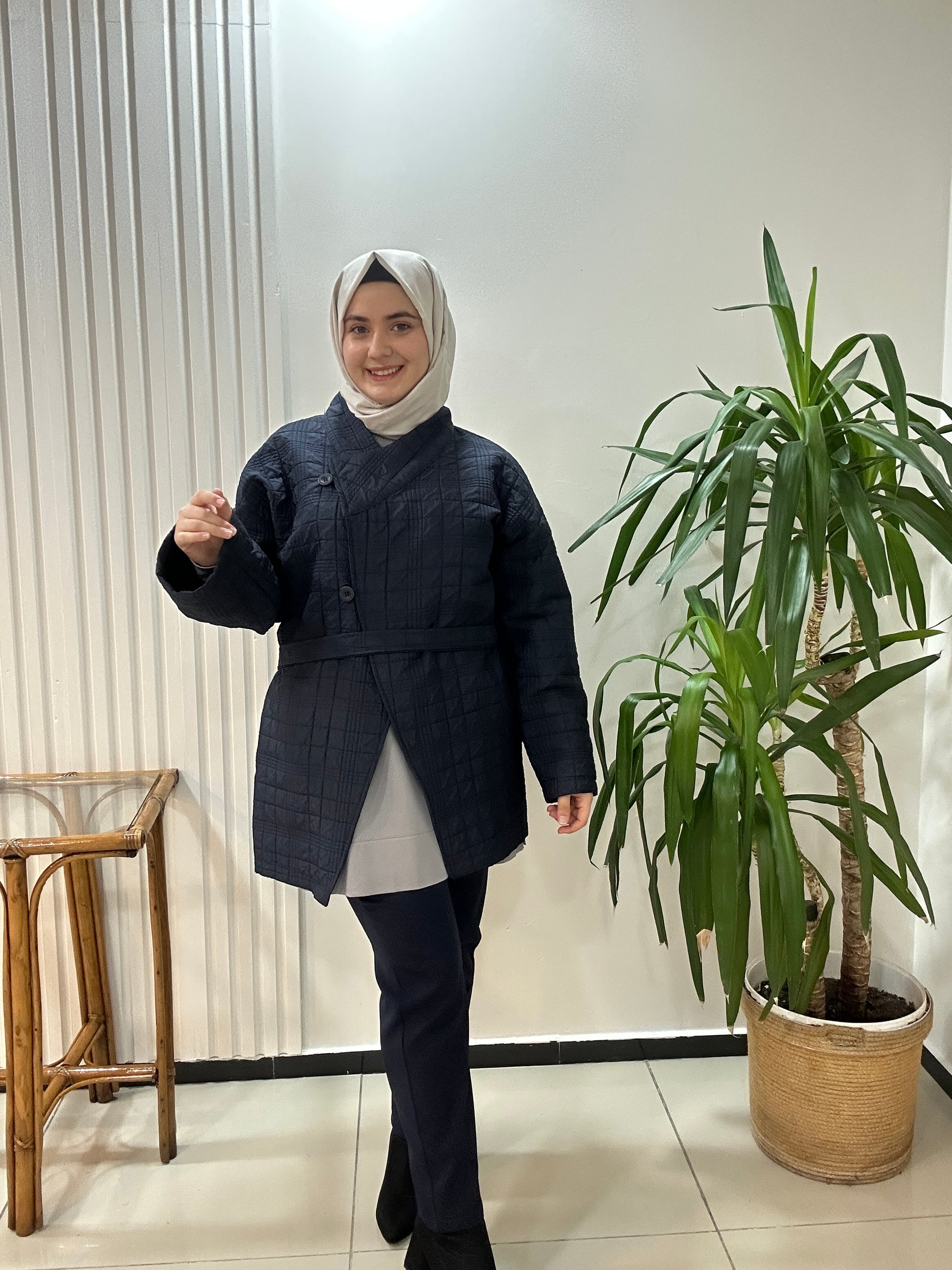 Dokuma Kapitone Trençkot Lacivert Mürdüm
