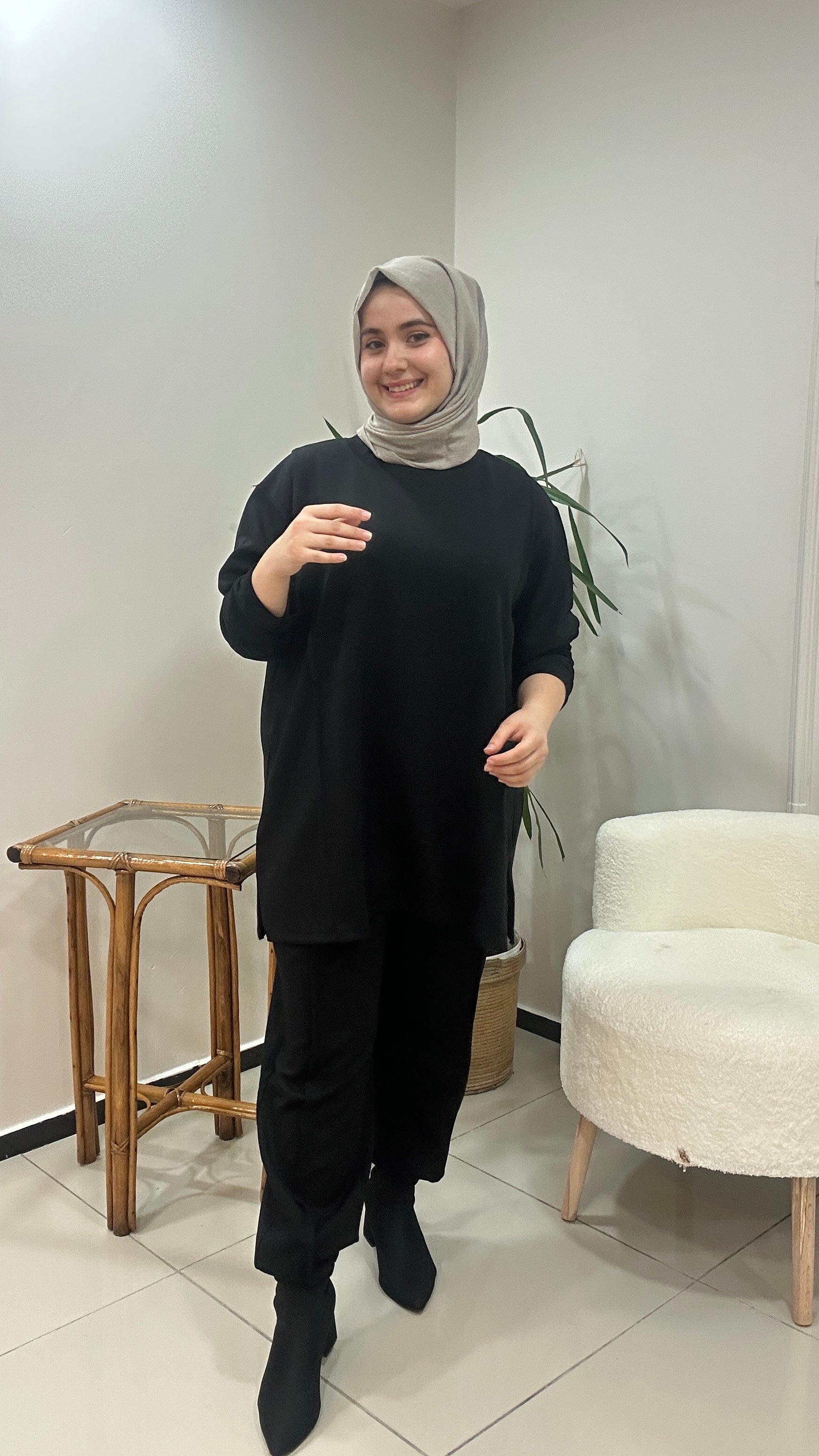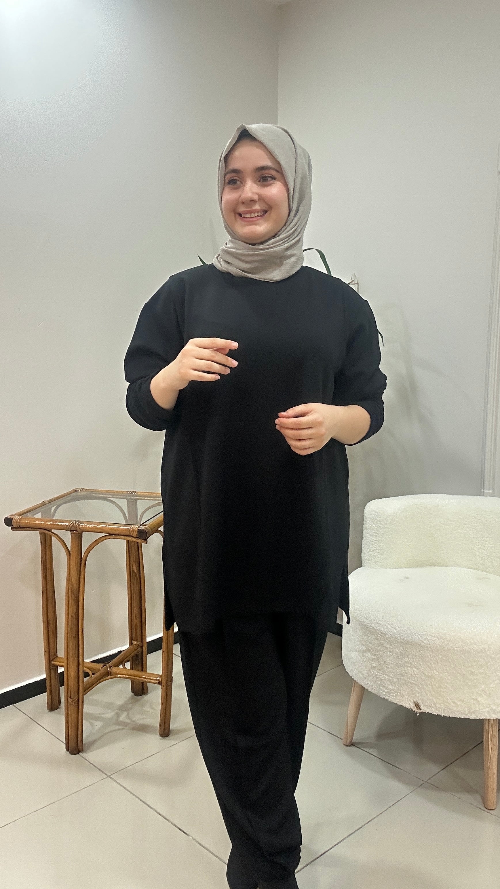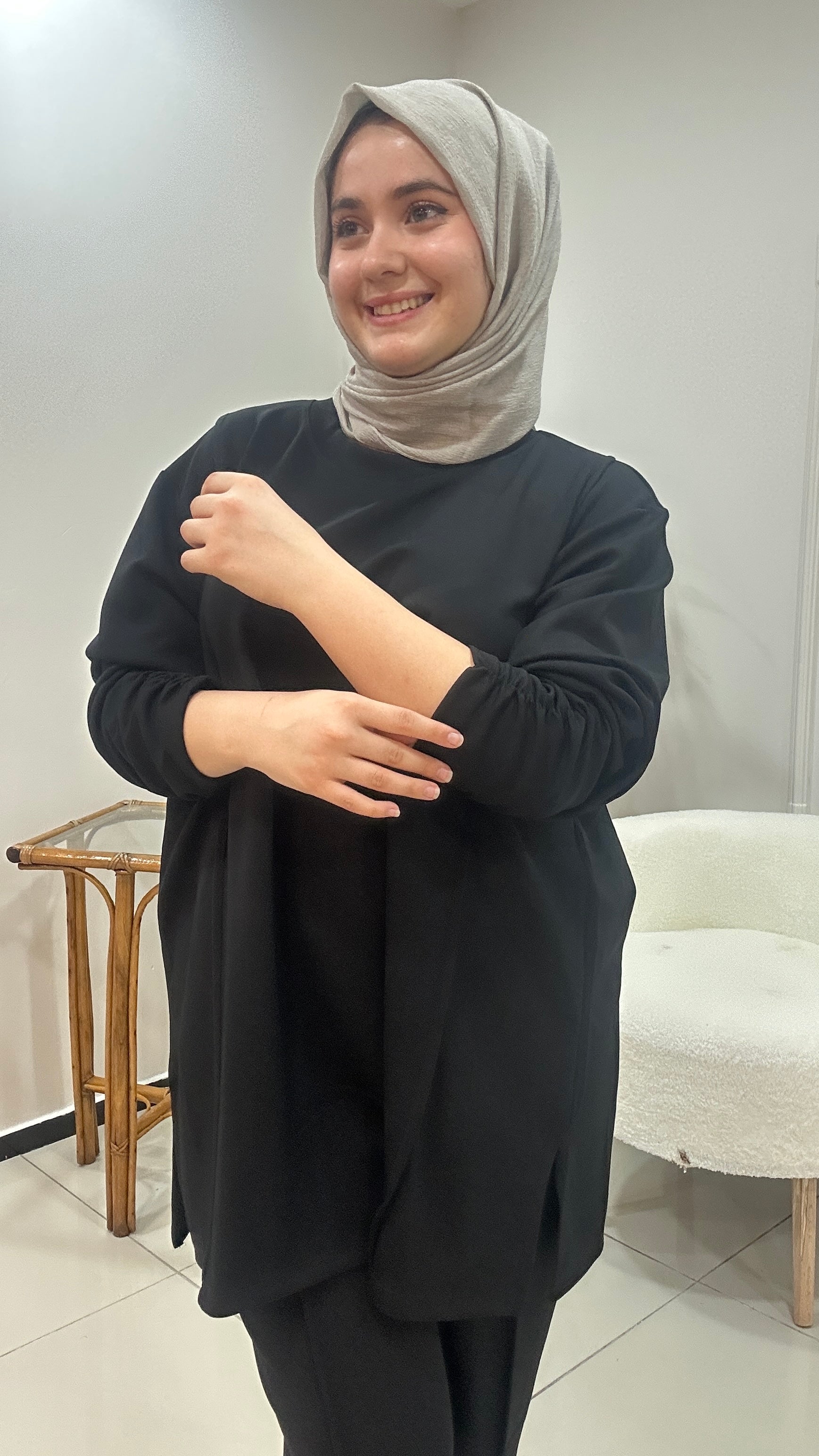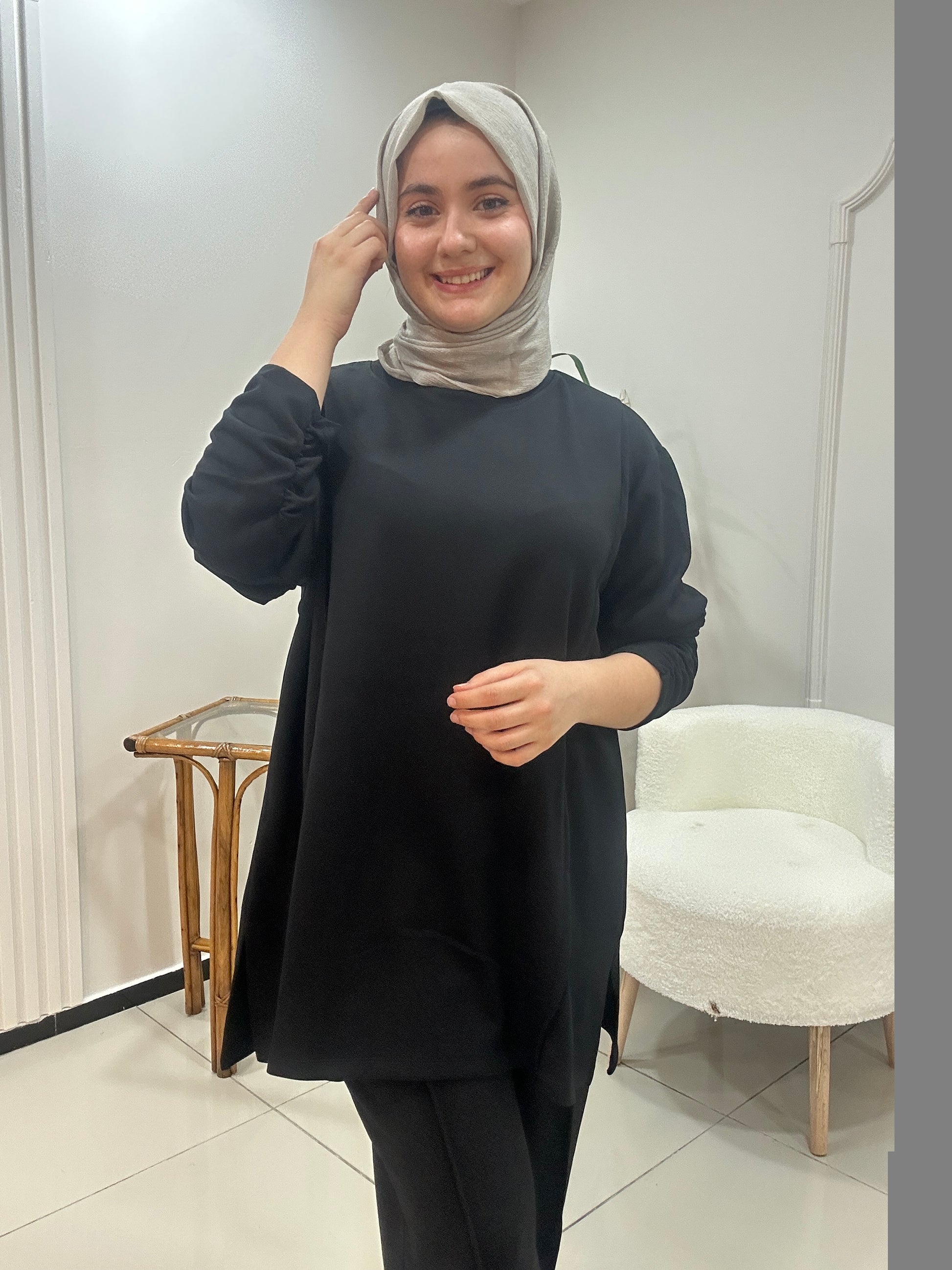Modal kumaş takım paçası lastikli rahat üründür. Esnek yapısıyla konfor sağlar.Pantolon beli lastiklidir. Kol ağzında büzgü detayı şık bir hava kazandırmış.