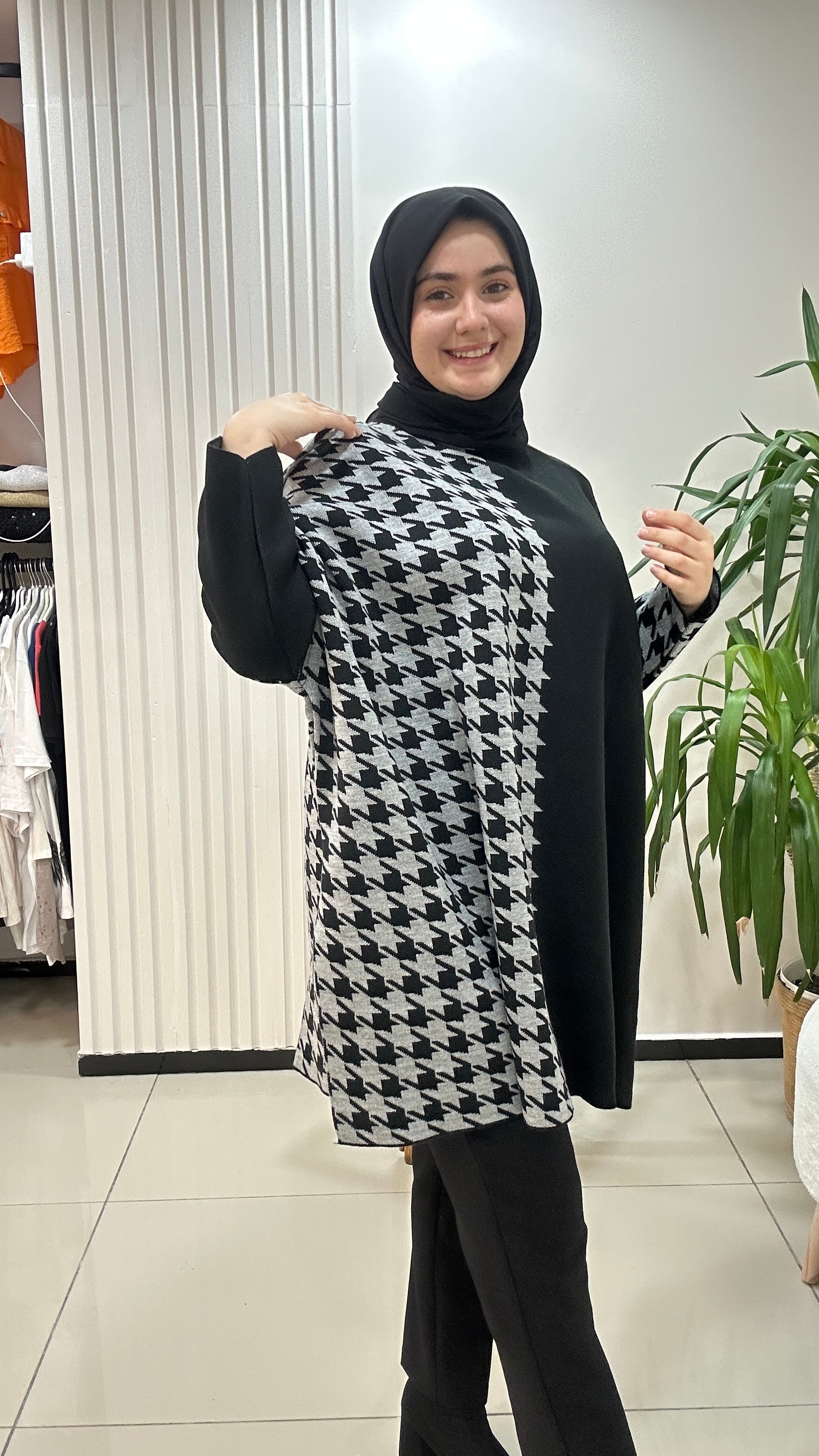 Geniş kalıp çelik örgü triko. 70 bedene kadar giyilebilir.