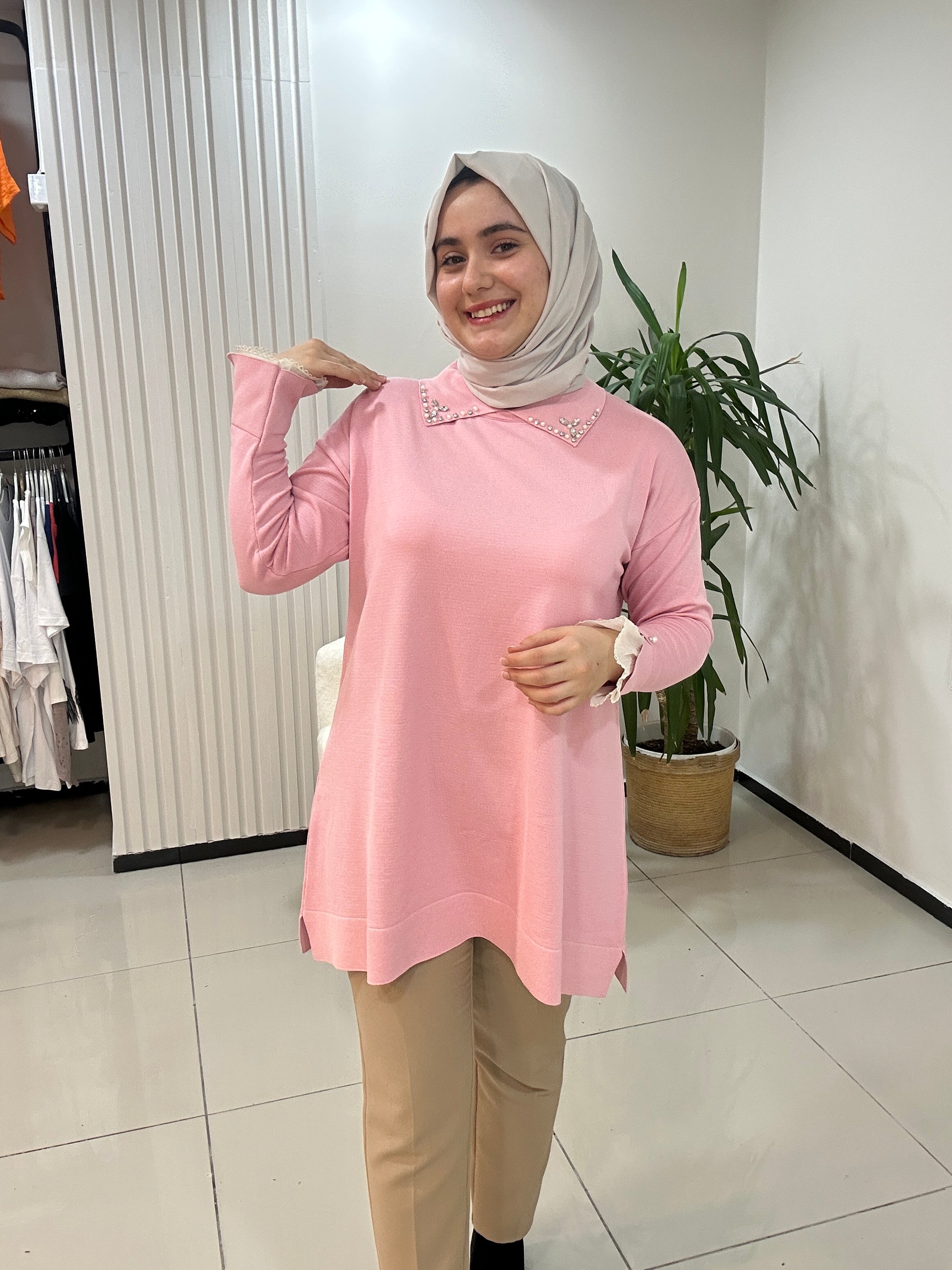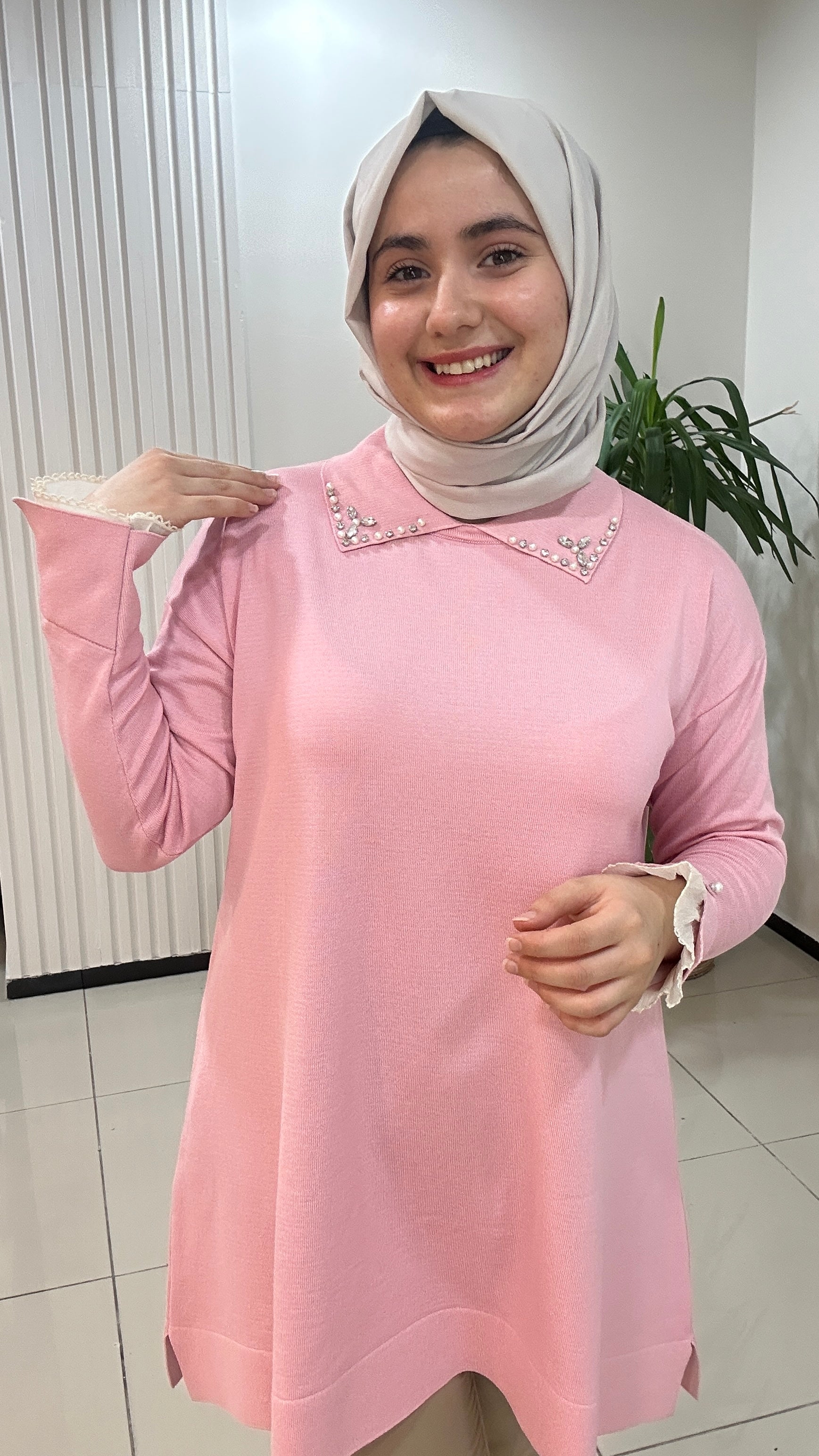 Kaliteli merserizedir. Kol ucu dantel detayı ve yakasındaki taş işlemeler çok şık ve zariftir. std beden ürün geniş kalıptır.