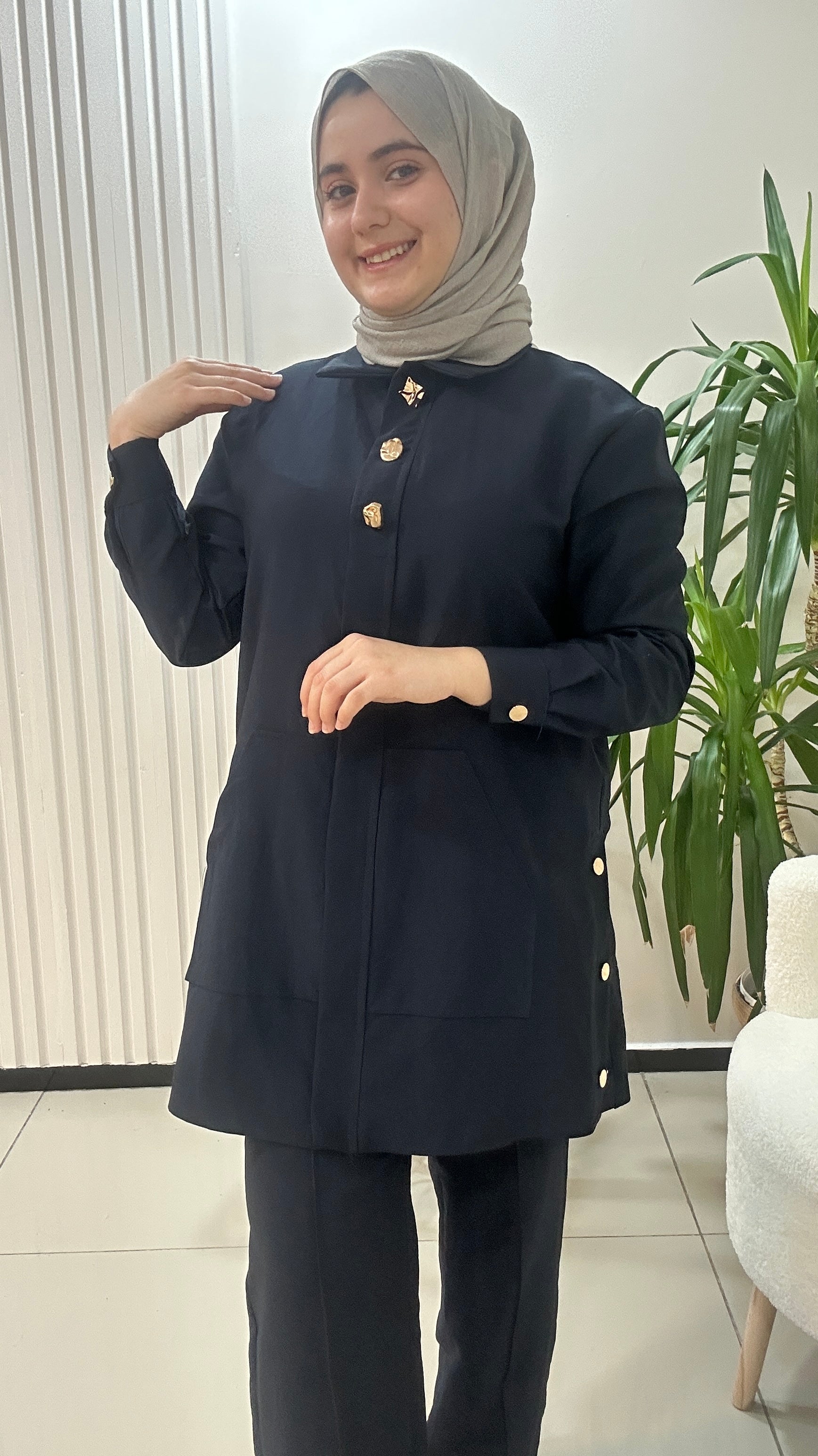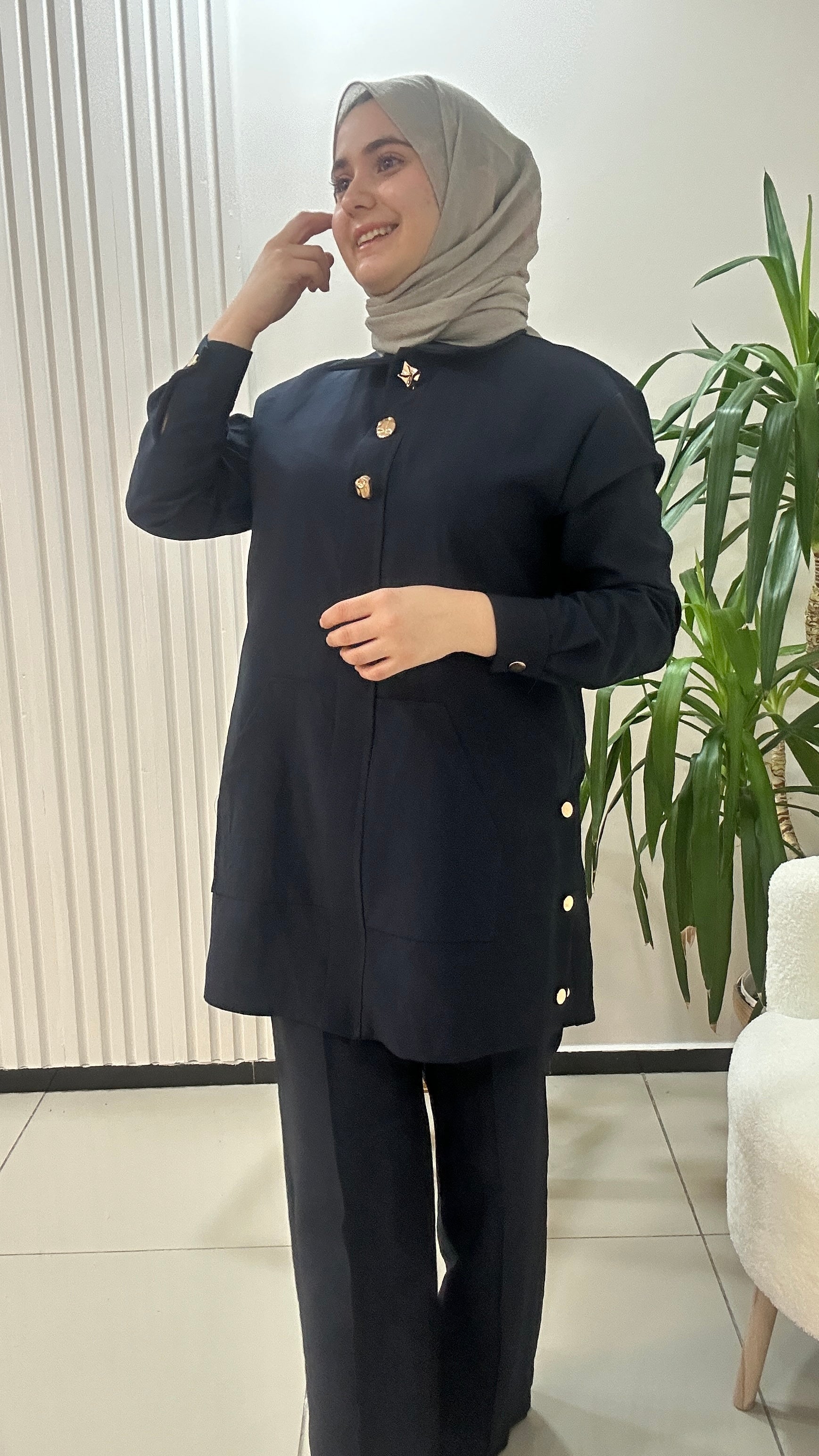 Puane marka kaliteli takım Şık spor bir duruşa sahip. Yırtmaçlardaki çıtçıtlar aktif