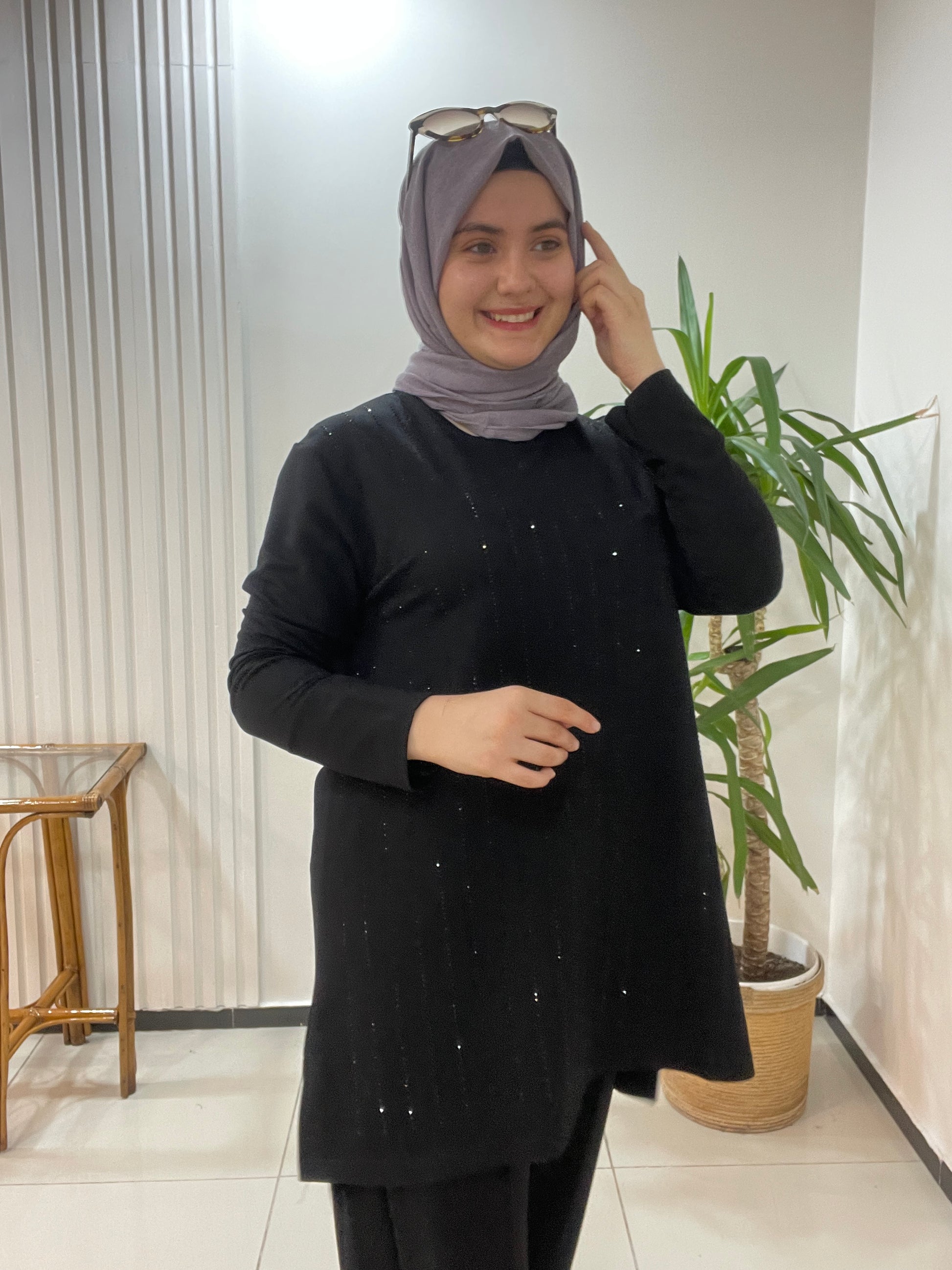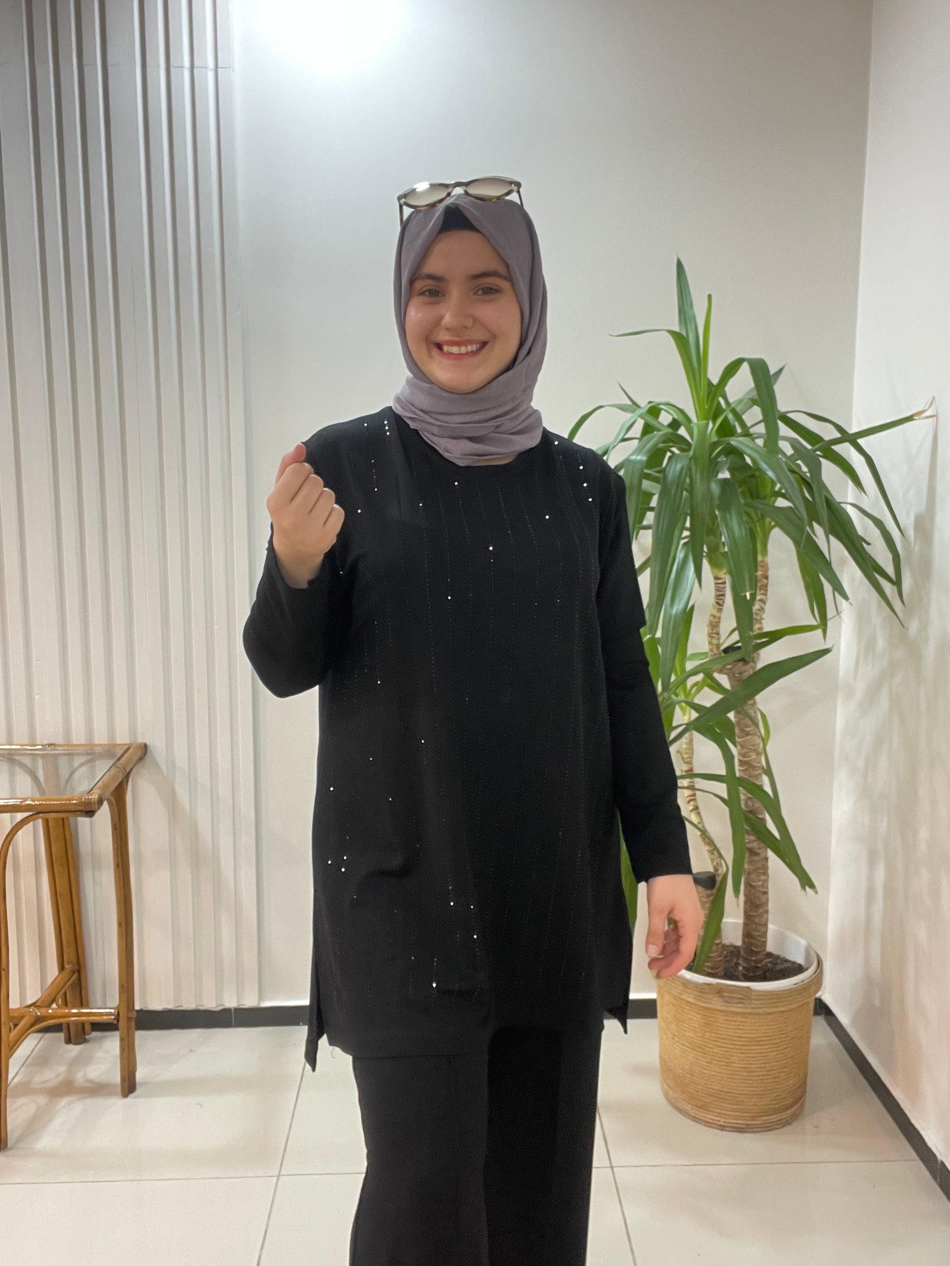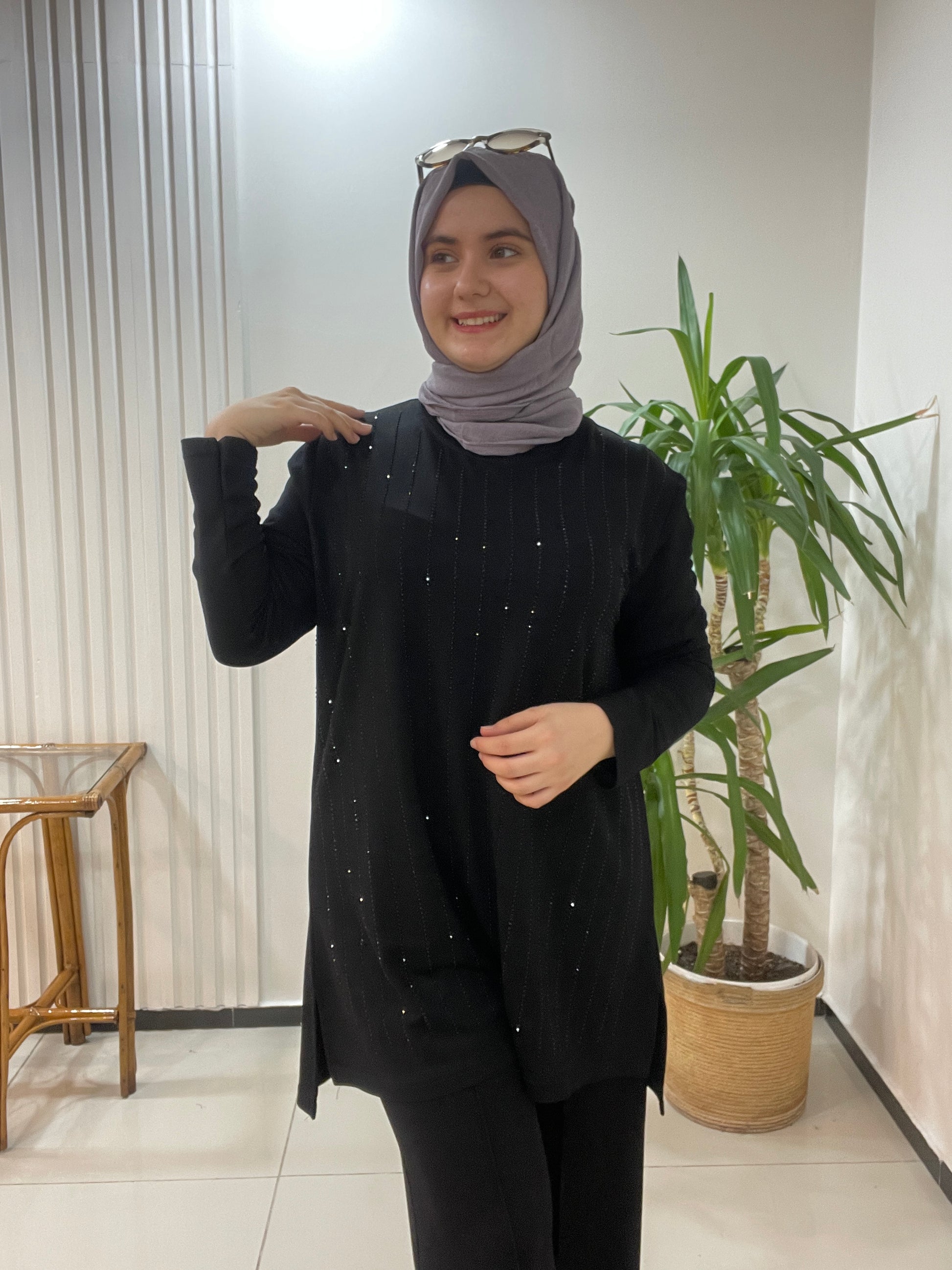 Taşlı Büyük Beden Takım Siyah