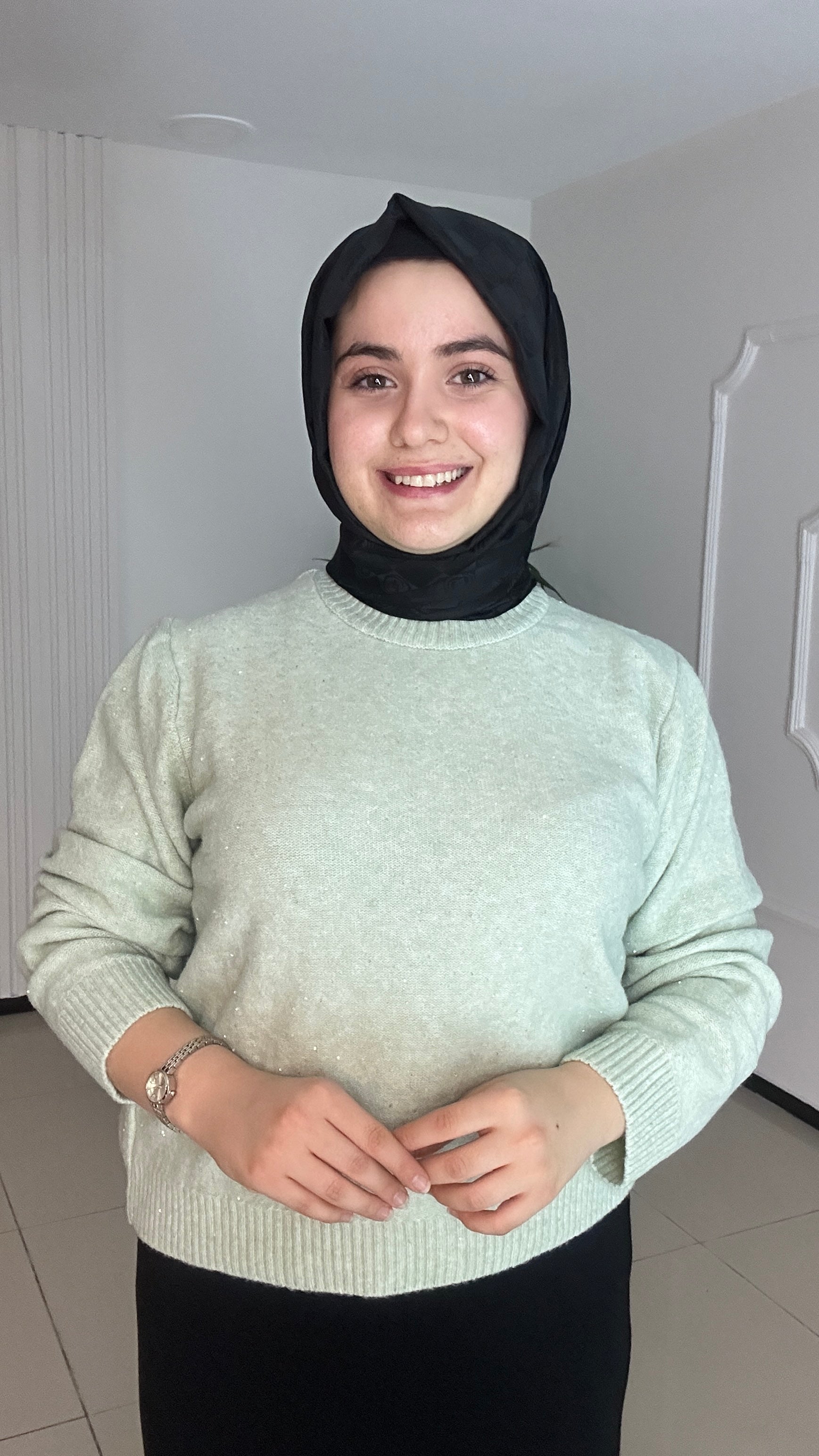 58cm boyunda örgü içinde pullar bulunan tatlı bir kazak. Şık duruşa sahip. Std beden 46 bedene kadar uyumlu
